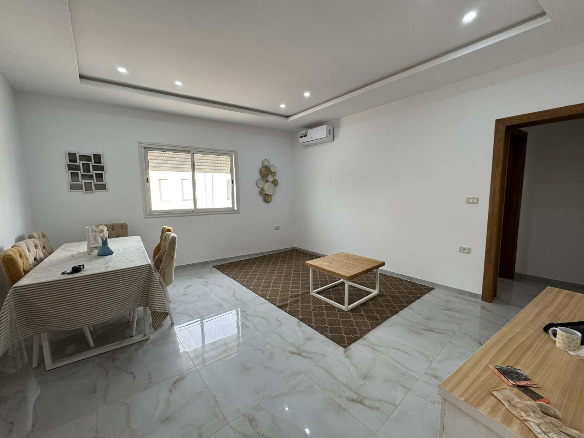 À louer un bel appartement S+2 meublé, en location annuelle, idéalement situé à Midoun, à proximité immédiate de toutes les commodités (commerces, écoles, transports, cafés…).
